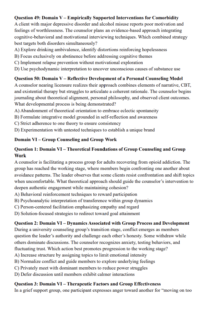 • Individuals wanting domain-specific review aligned with CACREP standards