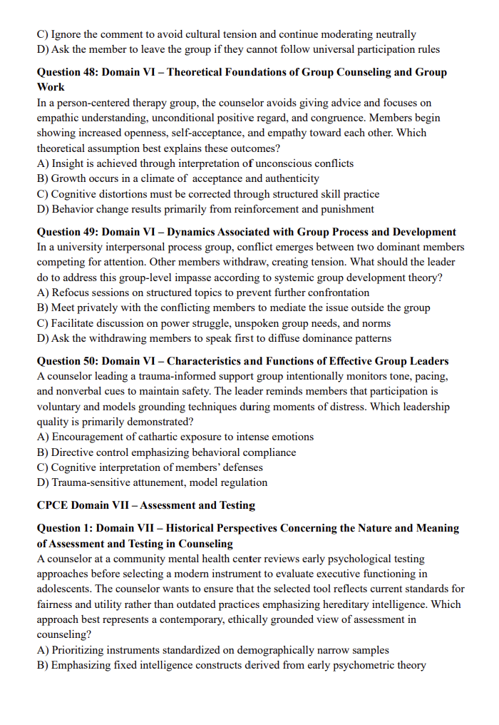 • Mirrors real CPCE reasoning demands with scenario-based practice