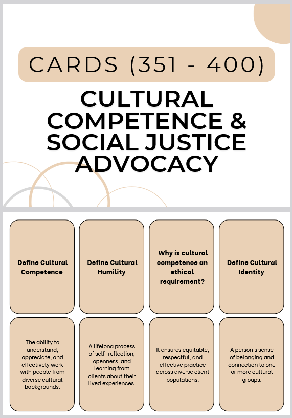 Cards 351–400: Cultural Competence & Social Justice Advocacy